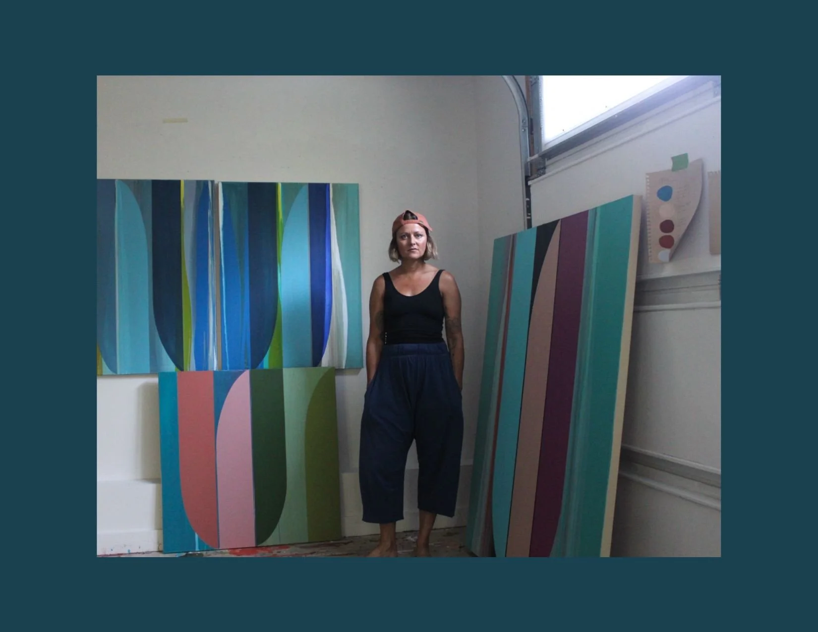 Bethany Mabee is a Midwest-based abstract artist and pattern designer who explores symbolism through process, color and pattern. Her practice moves in cyclical rhythms where each work feeds the next. Beginning with works on paper and expanding into layered, large-scale canvases. Materials used throughout her painting practice become components for collage work, while sections of finished paintings transform into patterns for fabric and wallpaper.
